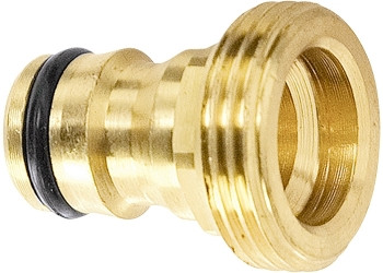 Адаптер изготовлен из латуни. Посадочный диаметр с внешней резьбой 1”, с другой стороны – штуцер (быстросъемное соединение). Посадочный и быстросъемный диаметр адаптера совместим со всеми адаптерами, быстросъемными соединителями, тройниками, разбрызгивателями латунной и пластиковой поливочной серии PALISAD.