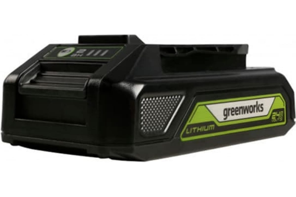 Аккумулятор с USB разъемом G24USB2 24 В, 2 Ач GreenWorks 2939207 - это литий-ионная (Li-ion) батарея, выполненная по самой современной технологии. Этот аккумулятор может использоваться для питания всех устройств Greenworks 24V.Аккумулятор состоит из нескольких ячеек высокого класса - А++. Ячейки управляются специальной платой с встроенным контроллером, благодаря которой ячейки заряжаются и разряжаются равномерно и одновременно, а также установлен чип для защиты от перегрева/перезаряда и глубокого разряда. Это увеличивает срок эксплуатации аккумулятора (до 2000 циклов), время работы устройства от аккумулятора (на 20 %), а при постепенном разряжении батареи во время работы инструмент не теряет своей мощности. Аккумулятор имеет USB-разъем с помощью которого его можно использовать в качестве зарядного устройства.Для удобства аккумулятор оснащен индикатором уровня заряда. 4 зелёных горящих индикатора деления уровня заряда: уровень заряда 10 %; уровень заряда 45 %; уровень заряда 70 %; уровень заряда 100 %.