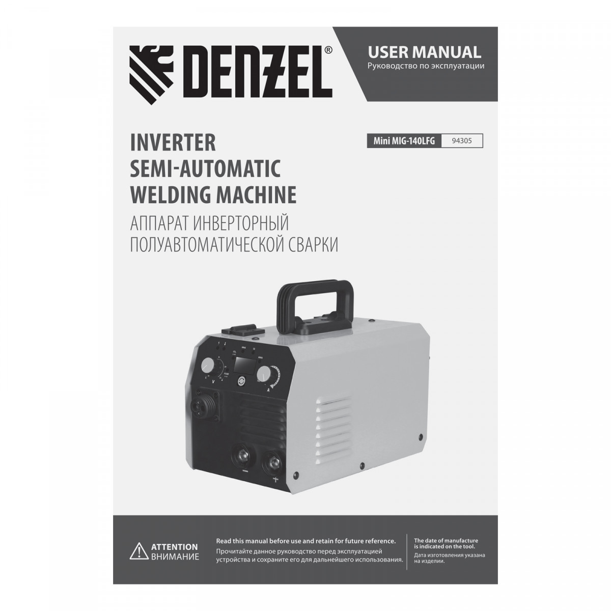 Аппарат инвертор. полуавтомат. сварки Mini MIG-140LFG, 140 А, ПВ 60%// Denzel