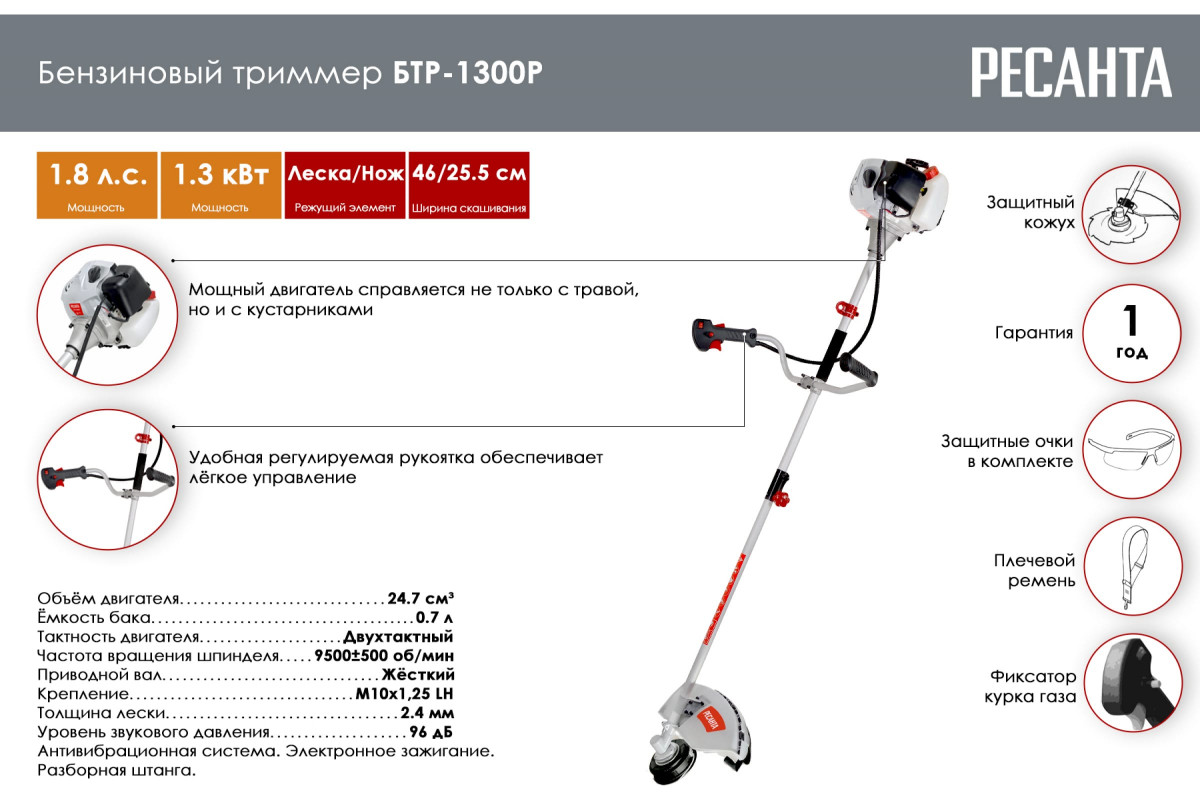 Бензотриммер БТР-1300Р Ресанта