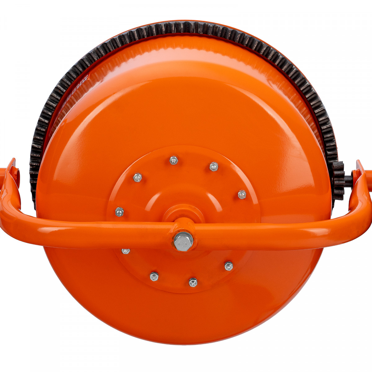 - Удобная загрузка и выгрузка смеси — барабан наклоняется при помощи маховика и легко фиксируется в нужном положении.