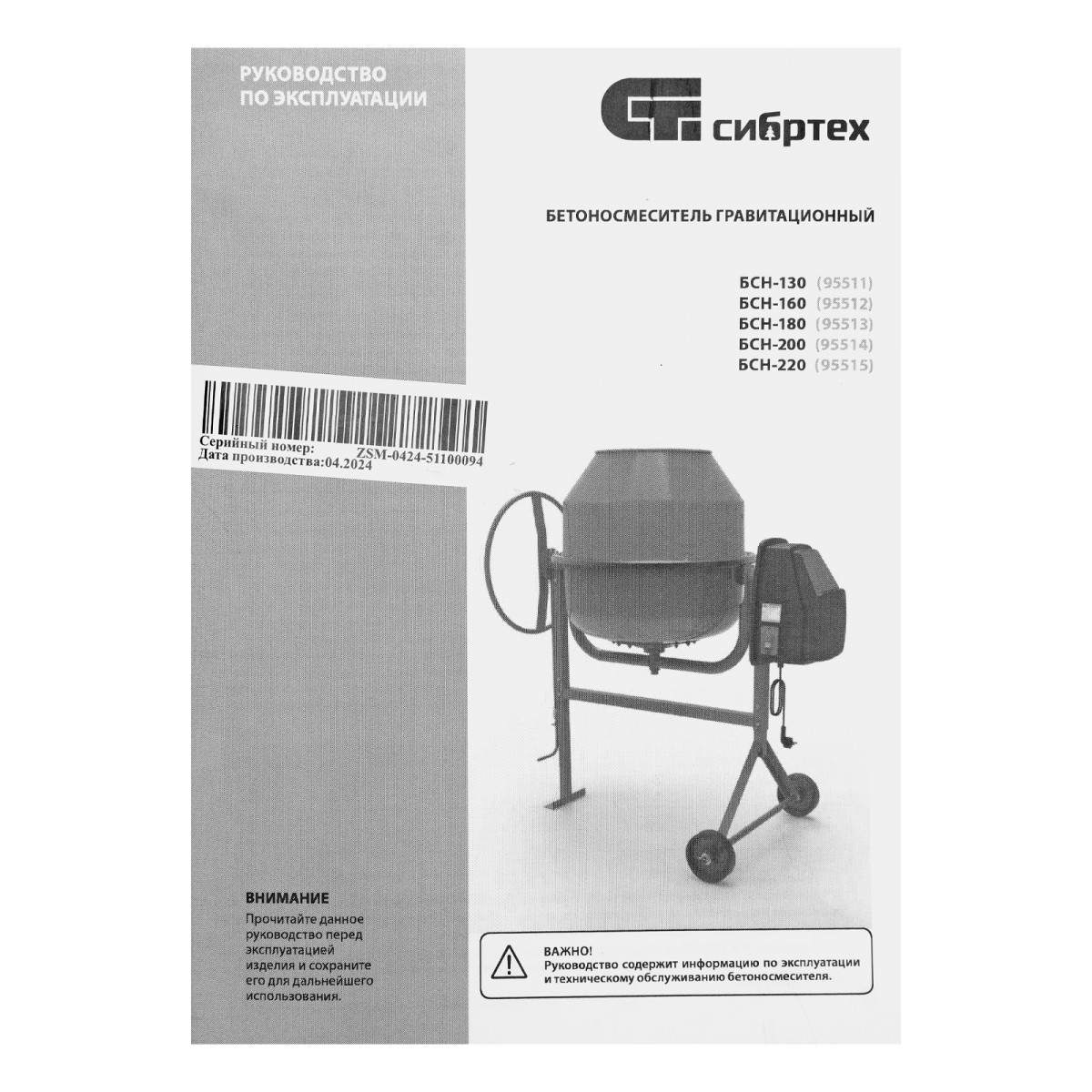 Бетоносмеситель БСН-180, мощность 700 Вт Сибртех