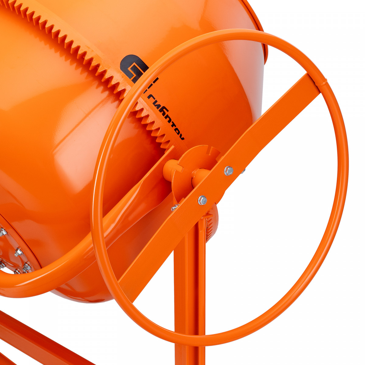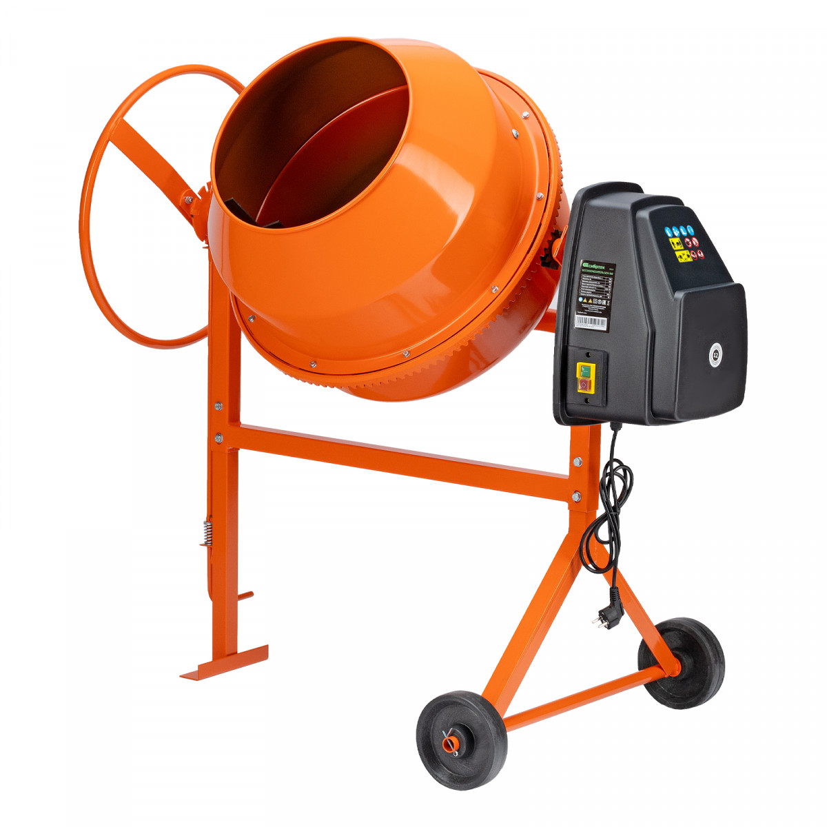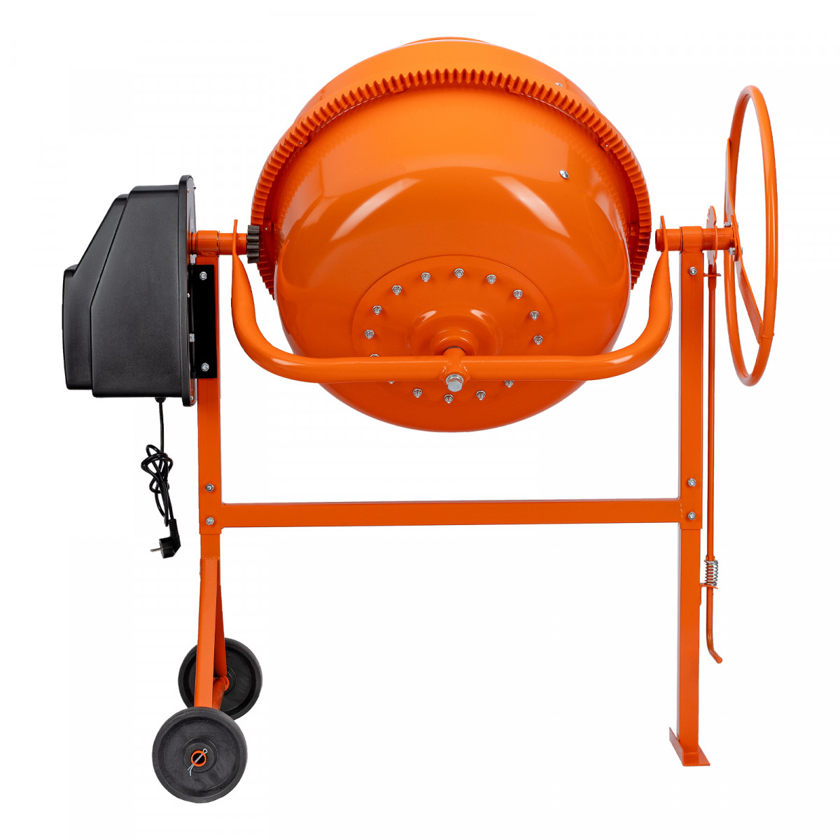• Удобная загрузка и выгрузка смеси — барабан наклоняется при помощи маховика и легко фиксируется в нужном положении.