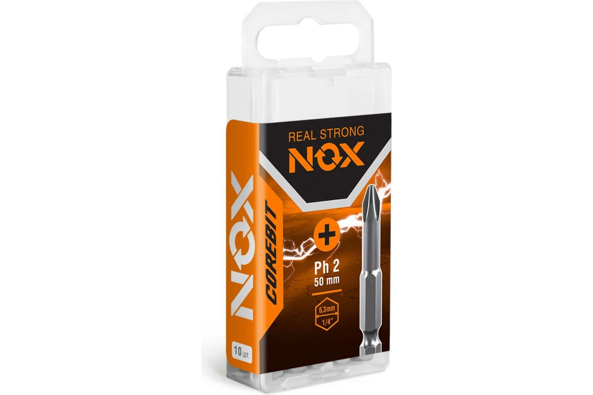 Бита NOX COREBIT – профессиональная бита для регулярных крепежных работ. Изготовлена из легированной стали марки S2, обладающей повышенной прочностью и износостойкостью. Твёрдость стали по шкале Роквелла 58-62 HRC. Шестигранный хвостовик ¼ HEX исключает проскальзывание оснастки в патроне электроинструмента. Биты NOX изготовлены методом фрезеровки , что обеспечивает точность формы биты в соответствии со стандартом DIN и гарантирует высокий ресурс биты. Подходит для работы электродрелью со стандартным трёхкулачковым зажимным патроном и шуруповёртом с шестигранным патроном для быстрой смены насадки.