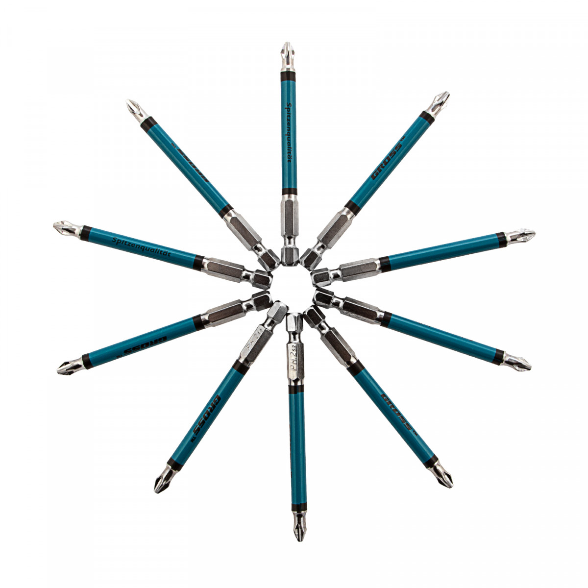 - Износоустойчивость — биты изготовлены из японской легированной стали S2 повышенной прочности и закалены до твердости 54-58 HRC.
