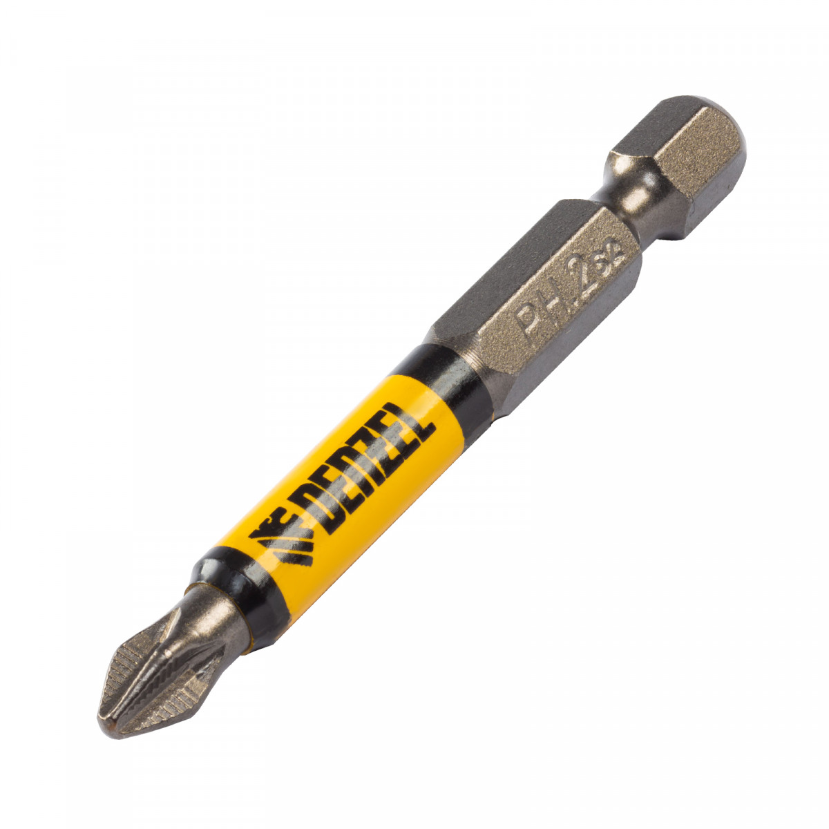 - Устойчивость к деформации при больших нагрузках — биты изготовлены из японской легированной стали S2 повышенной прочности и закалены до твердости 58 HRC.