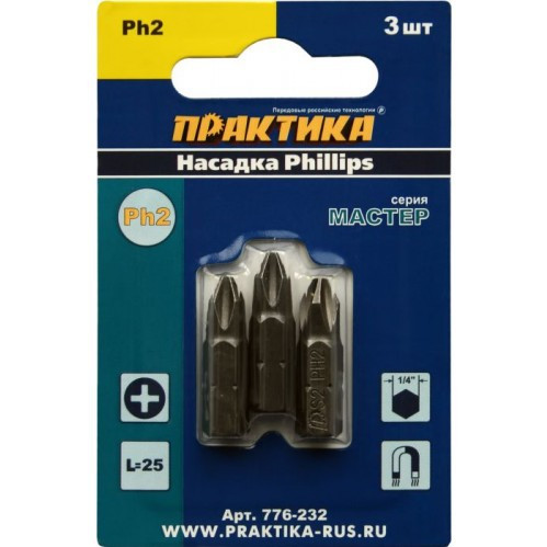 Бита ПРАКТИКА РН 2*25 мм Мастер 3 шт