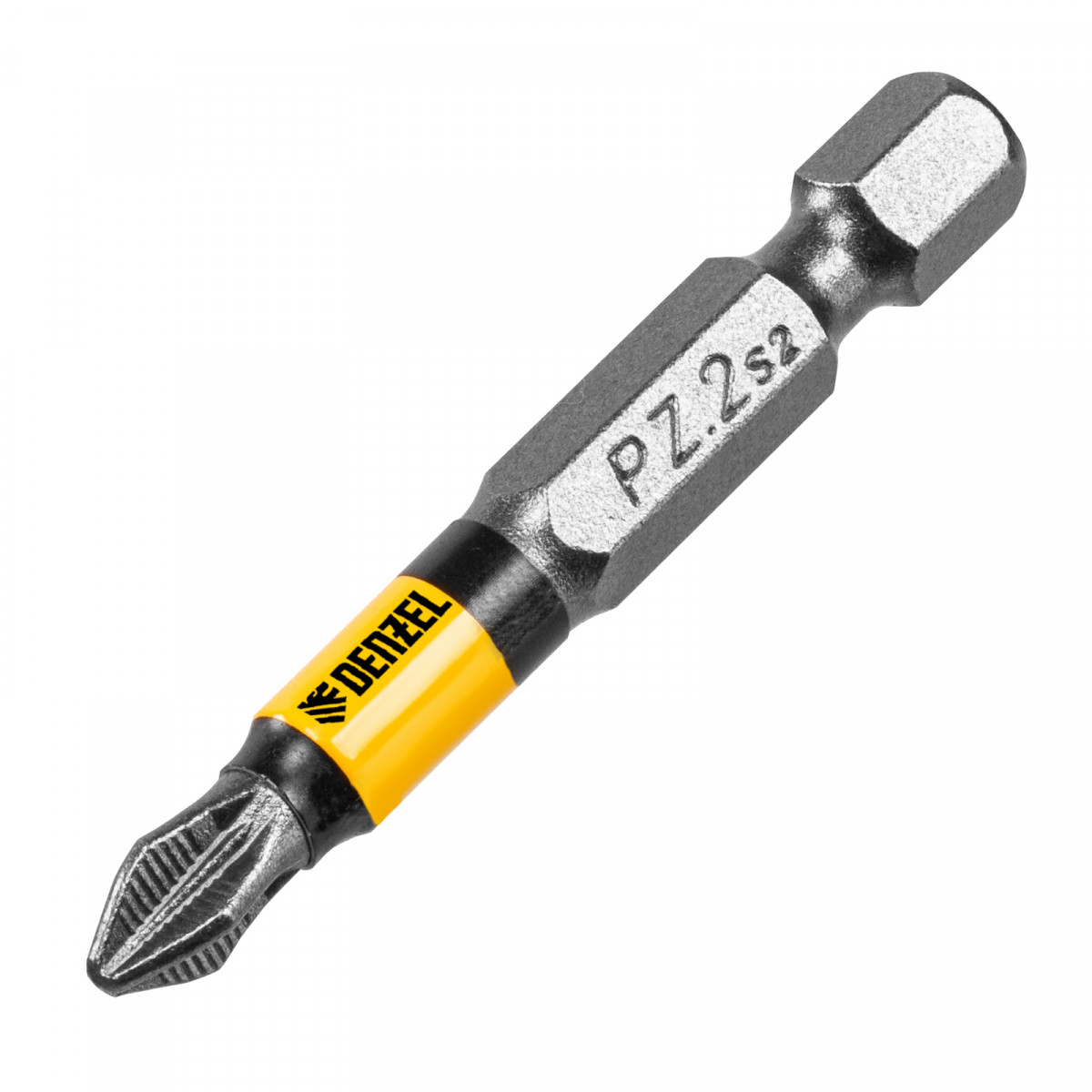 Бита PZ2х50, сталь легированная S2, 10 шт., круглый профиль, отрывная упаковка, , Е 6,3 Denzel