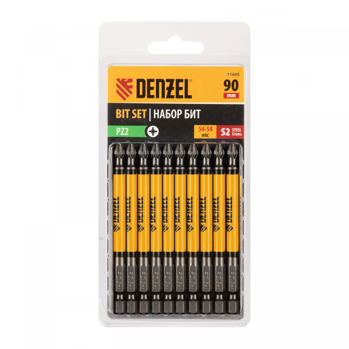 Бита PZ2х90, сталь S2, цилиндр., 10 шт. Е 6,3 Denzel