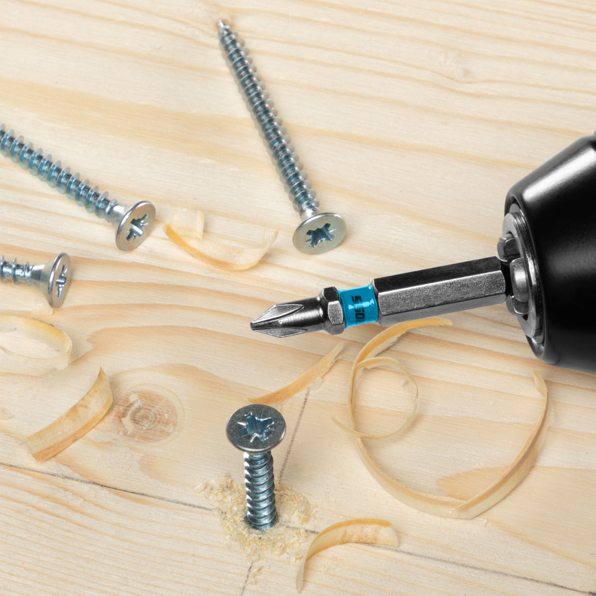 - Износостойкость и долговечность — биты изготовлены из японской легированной стали S2 твердостью 54-58 HRC, поэтому долго сохраняют рабочие свойства.