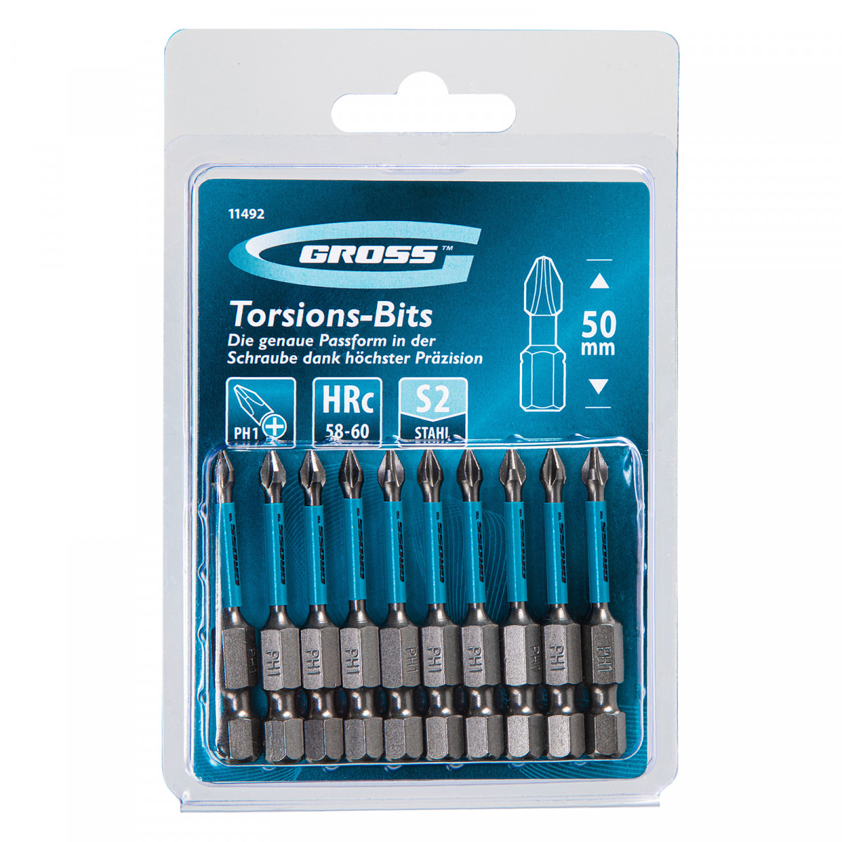 Бита торсионная PH1 x 50 мм, для ударных шуруповертов, 10 шт. Gross
