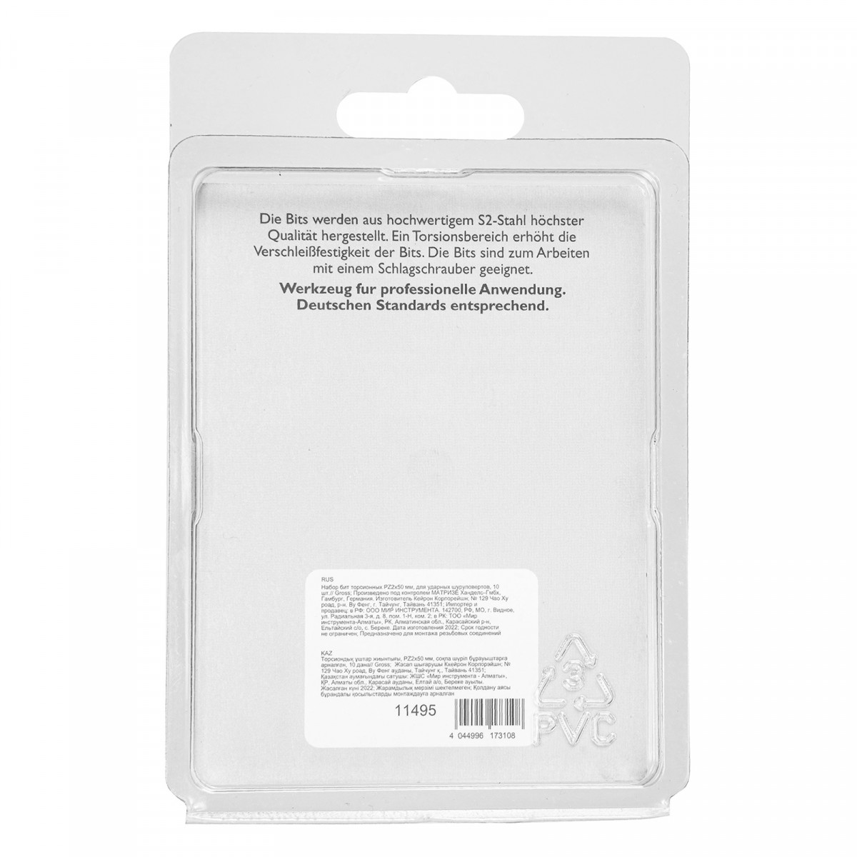 Набор торсионных бит PZ2 x 50 мм Gross 11495, 10 шт., предназначен для монтажа и демонтажа резьбовых соединений с помощью ударного шуруповерта. Он незаменим в строительных, слесарных и монтажных работах, в автосервисах, при проведении ремонта в доме. Торсионная зона способна пружинить, за счет чего она частично амортизирует тангенциальный удар от шуруповерта. Такое решение позволяет равномерно распределить нагрузку по бите и избежать поломки шлица.