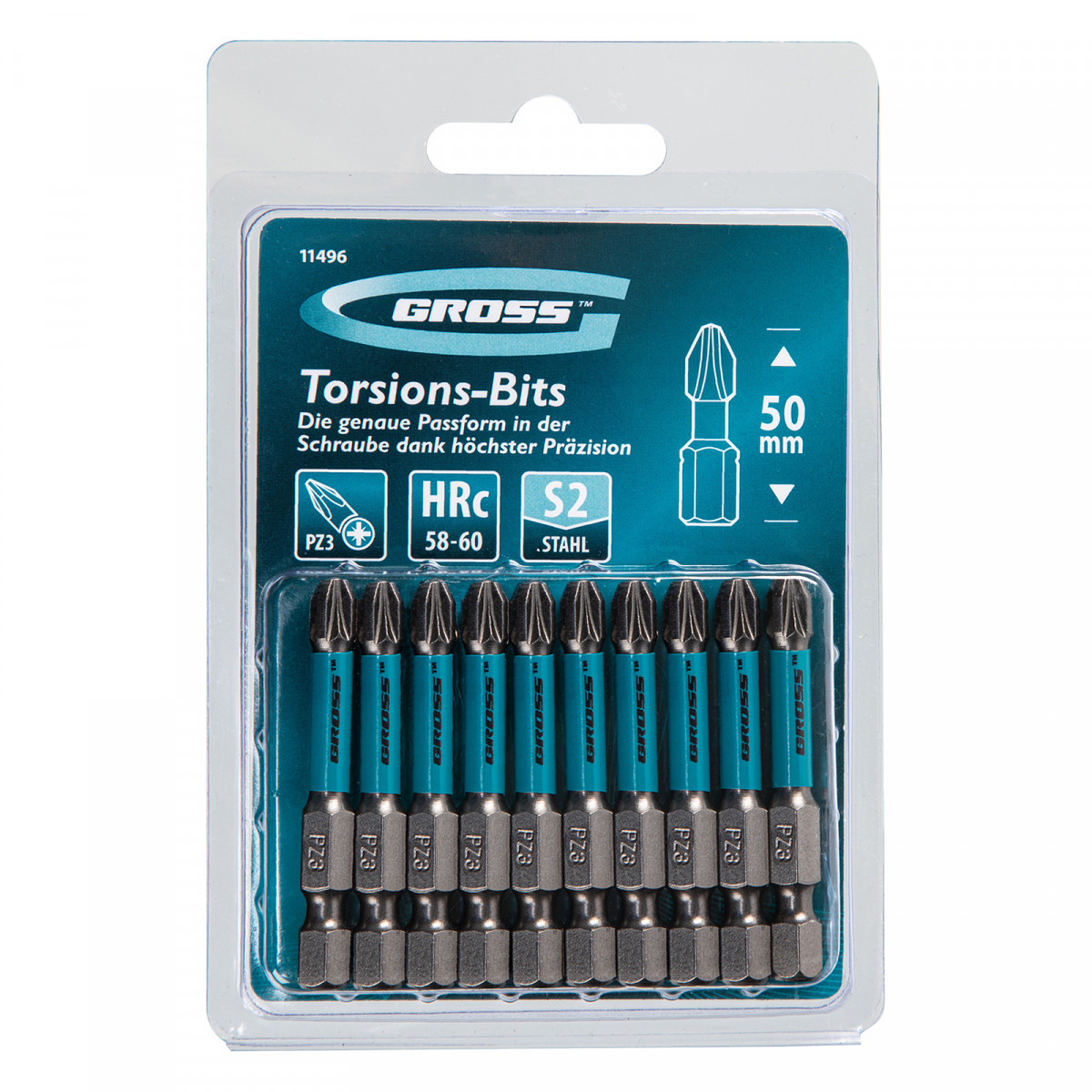 Бита торсионная PZ3 x 50 мм, для ударных шуруповертов, 10 шт. Gross