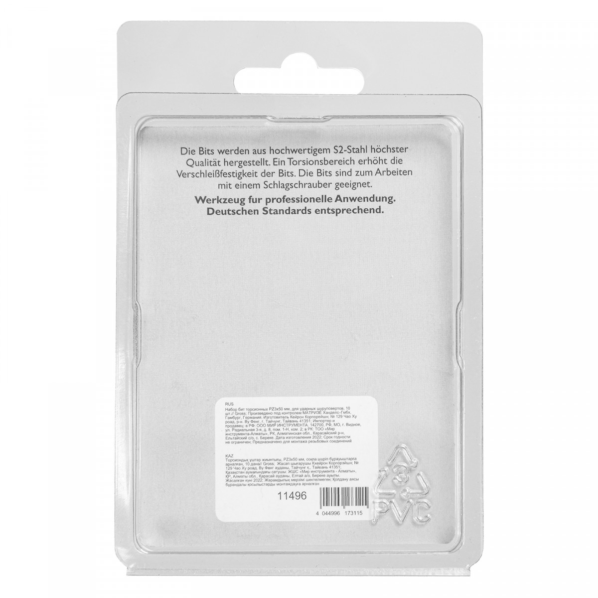 Набор торсионных бит PZ3 x 50 мм Gross 11496, 10 шт., предназначен для монтажа и демонтажа резьбовых соединений с помощью ударного шуруповерта. Он незаменим в строительных, слесарных и монтажных работах, в автосервисах, при проведении ремонта в доме. Торсионная зона способна пружинить, за счет чего она частично амортизирует тангенциальный удар от шуруповерта. Такое решение позволяет равномерно распределить нагрузку по бите и избежать поломки шлица.