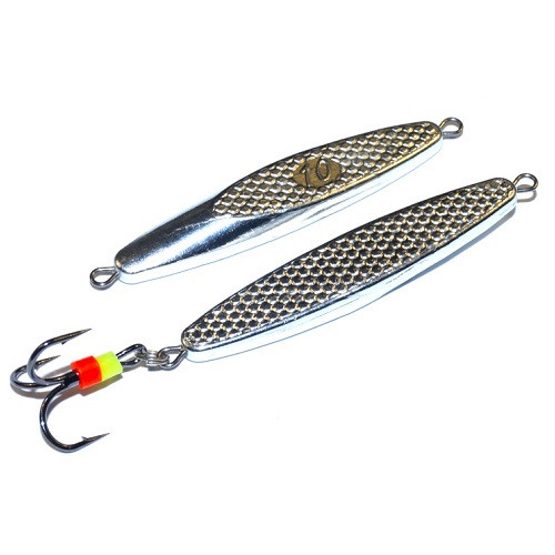 Блесны изготовлены из бинарного сплава серебра. Разработаны специально для ловли судака и крупного окуня со льда. Оснащены тройником с флуоресцентным кембрикоми серии ST-36 от фирмы "OWNER" № 8.