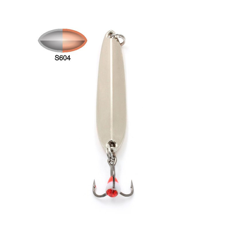 Блесны выполнены из качественных материалов и оснащены острым тройным крючком с цветной каплей, привлекающей внимание хищника. Эта блесна показывает потрясающе естественную игру в спокойной воде и при ловле хищника в местах с течением.У приманки очень красивая, яркая игра с отклонением в сторону от вертикальной оси на подбросах, что напоминает рыскающие движения юркой рыбешки. Эффектно выглядит модель и на плавной анимации. Блестящая поверхность на свету заманчиво бликует.