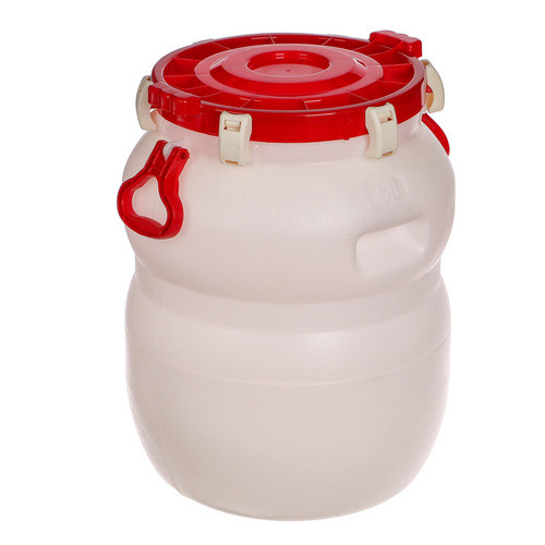 Бочка 60л герметичная с широким горлом. Герметичная бочка с винтовой крышкой и пластиковыми зажимами. Используется для хранения и транспортировки жидких, сыпучих, пастообразных пищевых и нефтехимических продуктов. Диаметр горловины - 336 мм, Размеры(д*ш*в) 430*430*570 мм. Вес - 2306 гр. Материал -HDPE (ПЭВД). Полиэтилен низкого давления (высокой плотности). * HDPE (ПЭВД) используется для производства полужесткой тары, один из самых безопасных пластиков, может быть использован повторно. Преимущества бочки: *Винтовая крышка с уплотнительным силиконовым кольцом исключает протекание. *Пластиковые зажимы обеспечат плотное прилегание крышки. *Специальное отверстие для пломбирования *Два типа ручек: 1) углубленные в теле бочки 2) Навесные регулируемые усиленные. *Возможность перекатывания.