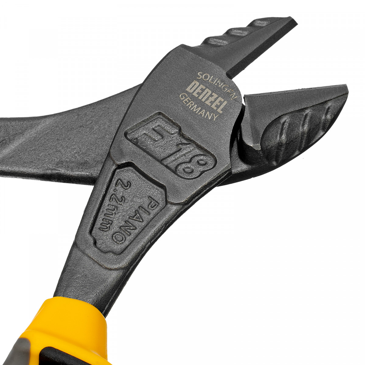 Усиленные бокорезы Denzel 17583 длиной 180 мм, с трехкомпонентными рукоятками, предназначены для разрезания кабелей, проводов, гвоздей и проволоки средней (750 Н/мм2) и высокой жесткости (1800 Н/мм2) диаметром 3,7 и 2,6 мм соответственно. Подходят для резки рояльных струн (предел прочности 2300 Н/мм2) диаметром до 2,2 мм. Успешно справляются не только с медными, алюминиевыми и пластмассовыми деталями, но и с более жесткими стальными элементами. Встроенный рычажный механизм и смещенный непосредственно к режущим кромкам шарнир увеличивают усилие реза на 20%.