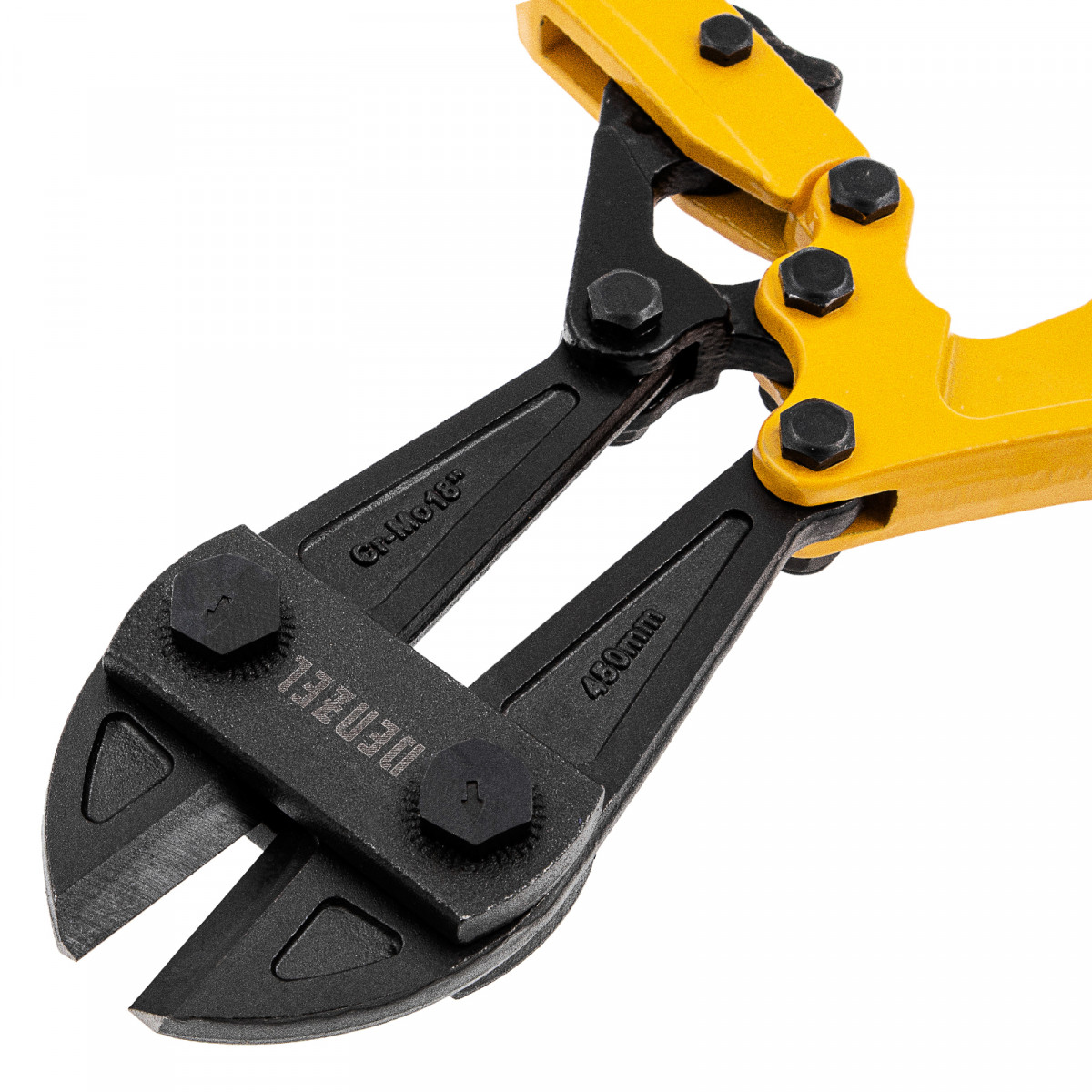 Болторез Denzel 78534 длиной 450 мм (18 дюймов), из стали Cr-Mo, предназначен для перекусывания стальных прутков диаметром 8 мм, болтов и шурупов, тросов, разнородной проволоки.