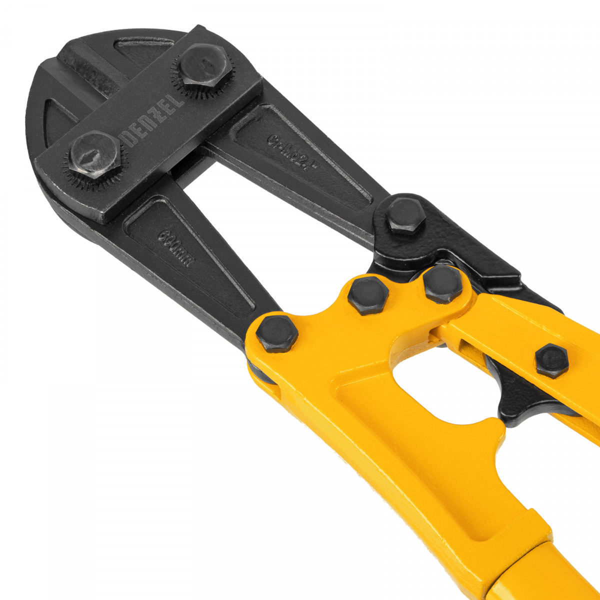 Болторез Denzel 78536 длиной 600 мм (24 дюймов), из стали Cr-Mo, предназначен для перекусывания стальных прутков диаметром 9,5 мм, болтов и шурупов, тросов, разнородной проволоки.