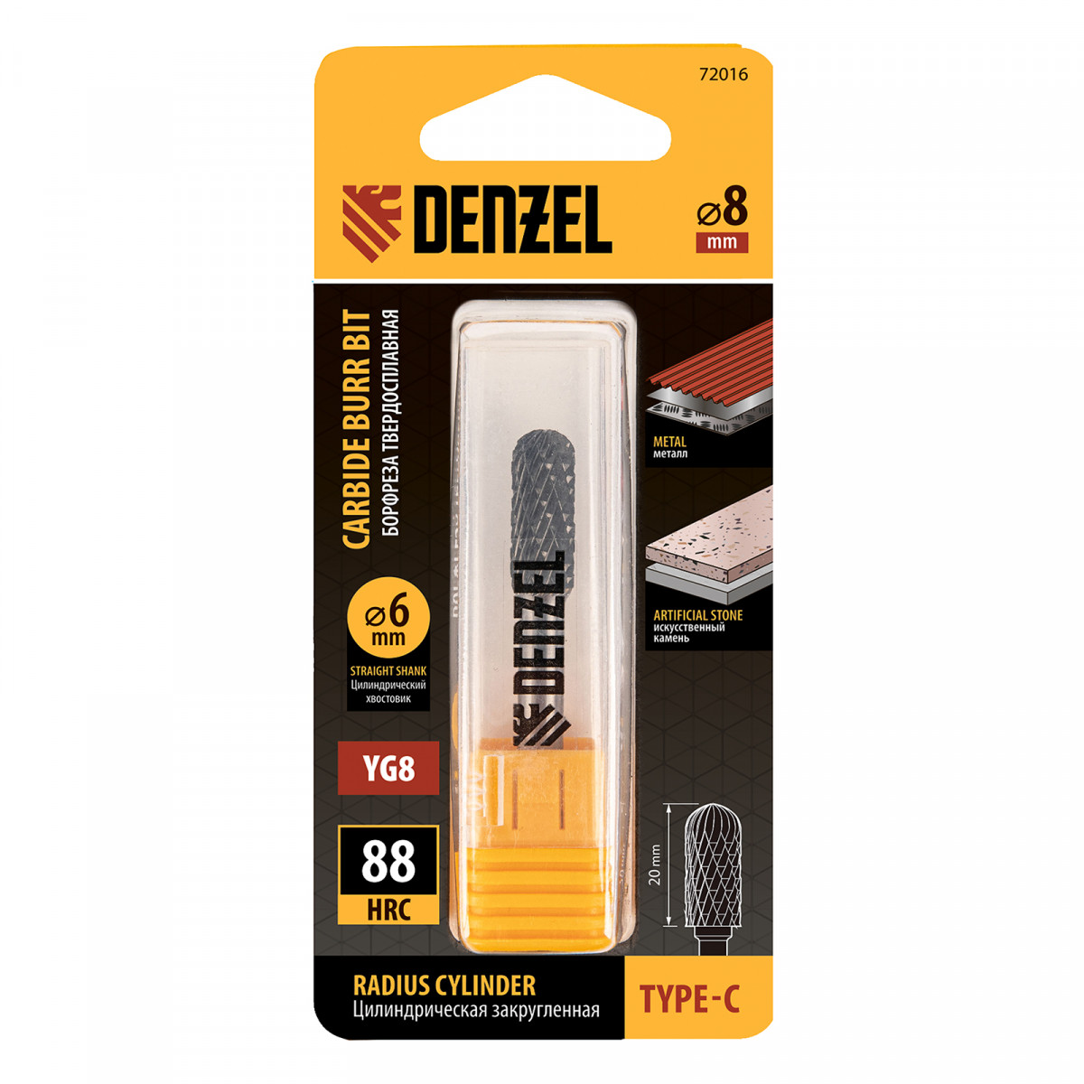 Твердосплавная борфреза Denzel 72016 с цилиндрической закругленной рабочей частью (тип C), диаметром 8 мм, предназначена для шлифовальных работ по металлу: закаленной и нержавеющей стали, латуни, чугуну, бронзе, титану, меди. Также используется для обработки искусственного камня и металлокерамики. Борфреза позволяет зачищать сварные швы, удалять заусенцы и снимать фаски. Форма рабочей части оптимальна для обработки радиусных пазов, поверхностей с плавными изгибами. Также с помощью борфрезы можно быстро и эффективно восстановить гравировку. Оснастка устанавливается на дрель или прямошлифовальную машину.