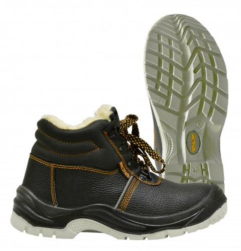 Верх обуви выполнен из натуральной кожи. Рабочая обувь из натуральной кожи долговечна, устойчива к повреждениям, комфортна в носке. Натуральная кожа обладает воздухопроницаемыми свойствами, не дает ногам потеть. Фиксируется обувь на ноге с помощью шнурков, которые плотно обхватывают стопу, улучшая комфорт ношения. Утеплитель из искусственного меха хорошо держит тепло, рассчитан на температурные режимы до -18 °C. Противоударный металлический подносок защищает от ударов в носочной части энергией 200 Дж. Металлическая антипрокольная стелька дополнительно защищает стопы ног от проколов, порезов, сильных ударов и прочих производственных травм.