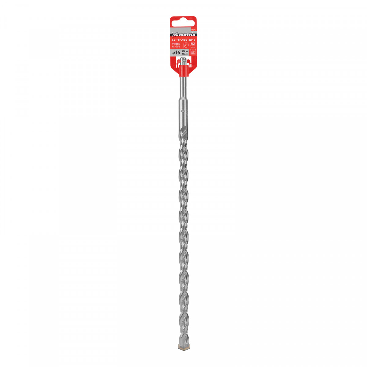 Бур по бетону Matrix 71046, 16 х 400 мм, SDS PLUS предназначен для установки на перфоратор и позволяет получать отверстия диаметром 16 мм в бетоне, камне и кирпиче. Он эффективно решает поставленные задачи благодаря режущей пластине из высокотвердого сплава карбида вольфрама ВК8 твердостью 80-90 HRC.