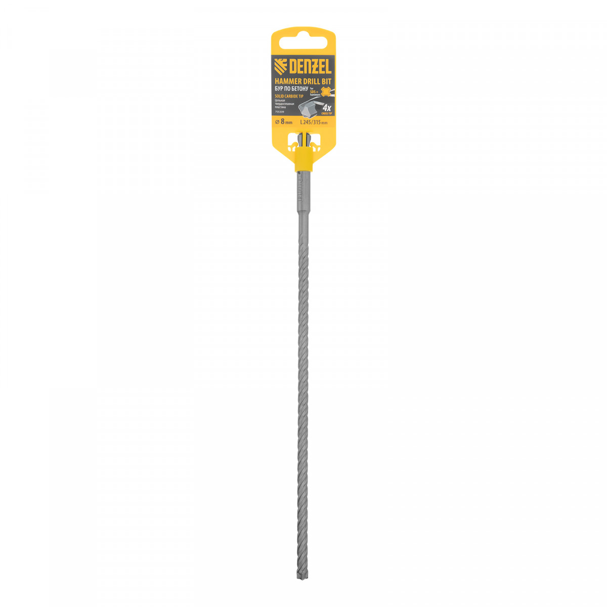 Бур по бетону, цельная крестовая пластина, 8x315 мм, SDS PLUS Denzel