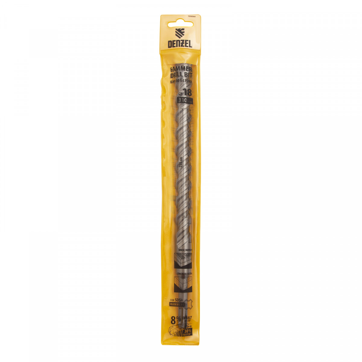Бур по бетону, двойная спираль, три пылеотводящие кромки, 18 x 310 мм DENZEL