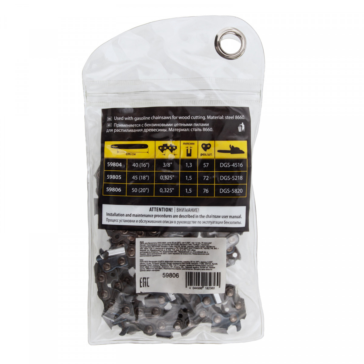 Цепь для бензопилы DGS-5820, шина 50 см (20") шаг 0.325", паз 1.5 мм, 76 звеньев Denzel
