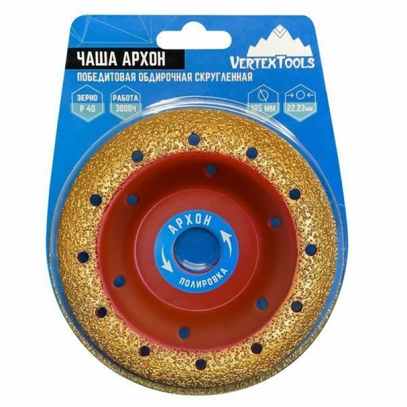Чаша архон победитовая обдирочная скругленная 125мм.22,23 Р40 (1/ 10/ 60) VERTEXTOOLS