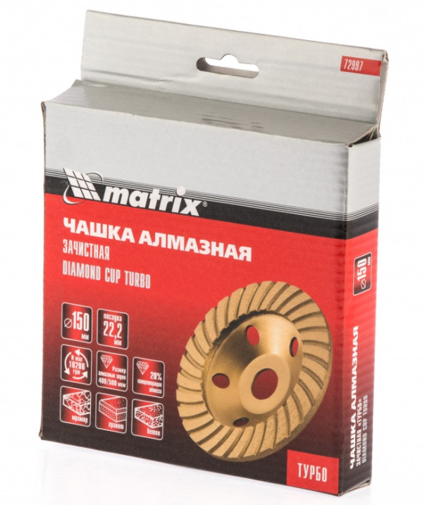 - Чашка алмазная "Turbo" ТМ Matrix предназначена для шлифования бетона, гранита, мрамора, кирпича, камня.