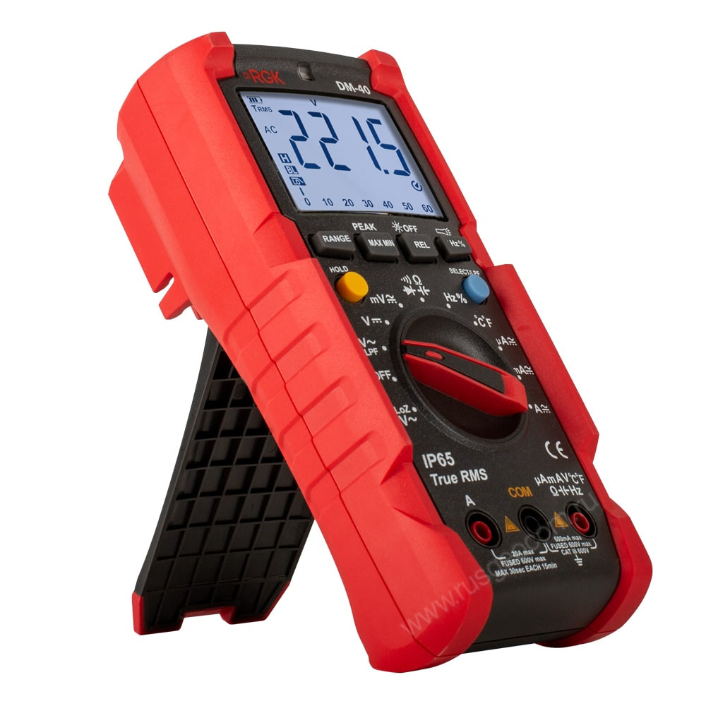 Товар соответствует описанию и заявленным характеристикам. Крутой внешний вид, небольшого размера(думал что будет больше...), удобно держать в руках, имеются пазы для крепления щупов сзади прибора. В инструкции все слова на Русском языке