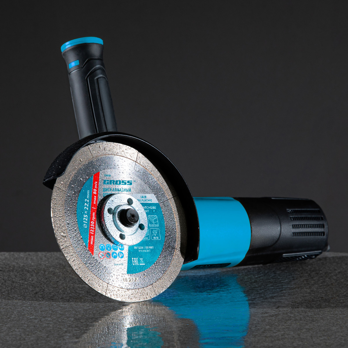 Диск алмазный, 125 х 22.2 мм, сплошной c лазерной перфорацией, мокрая резка Gross