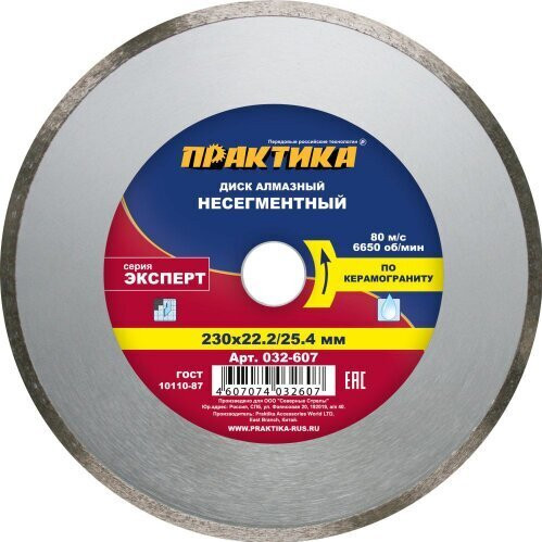 Диск алмазный 230*25,4/22 мм несегментный "Эксперт-керамогранит" ПРАКТИКА