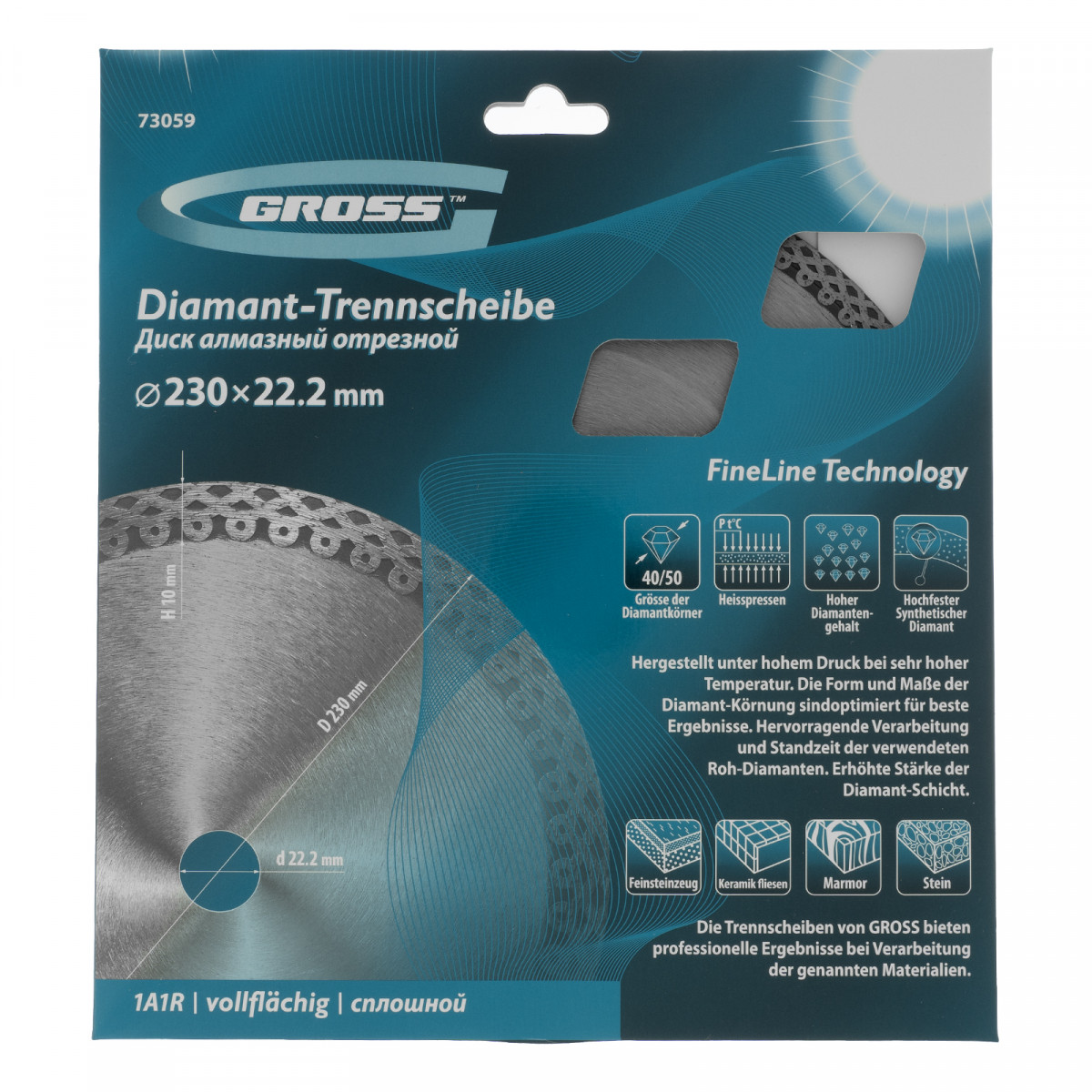 Диск алмазный, 230 х 22.2 мм, тонкий, сплошной (Jaguar) мокрая резка Gross