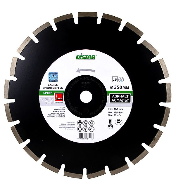 Круг отрезной LP80F 1A1RSS/C1S-W 350*3,2/2,2*10*25,4-21 F4 Sprinter Plus – подходит для бензорезов и швонарезчиков.