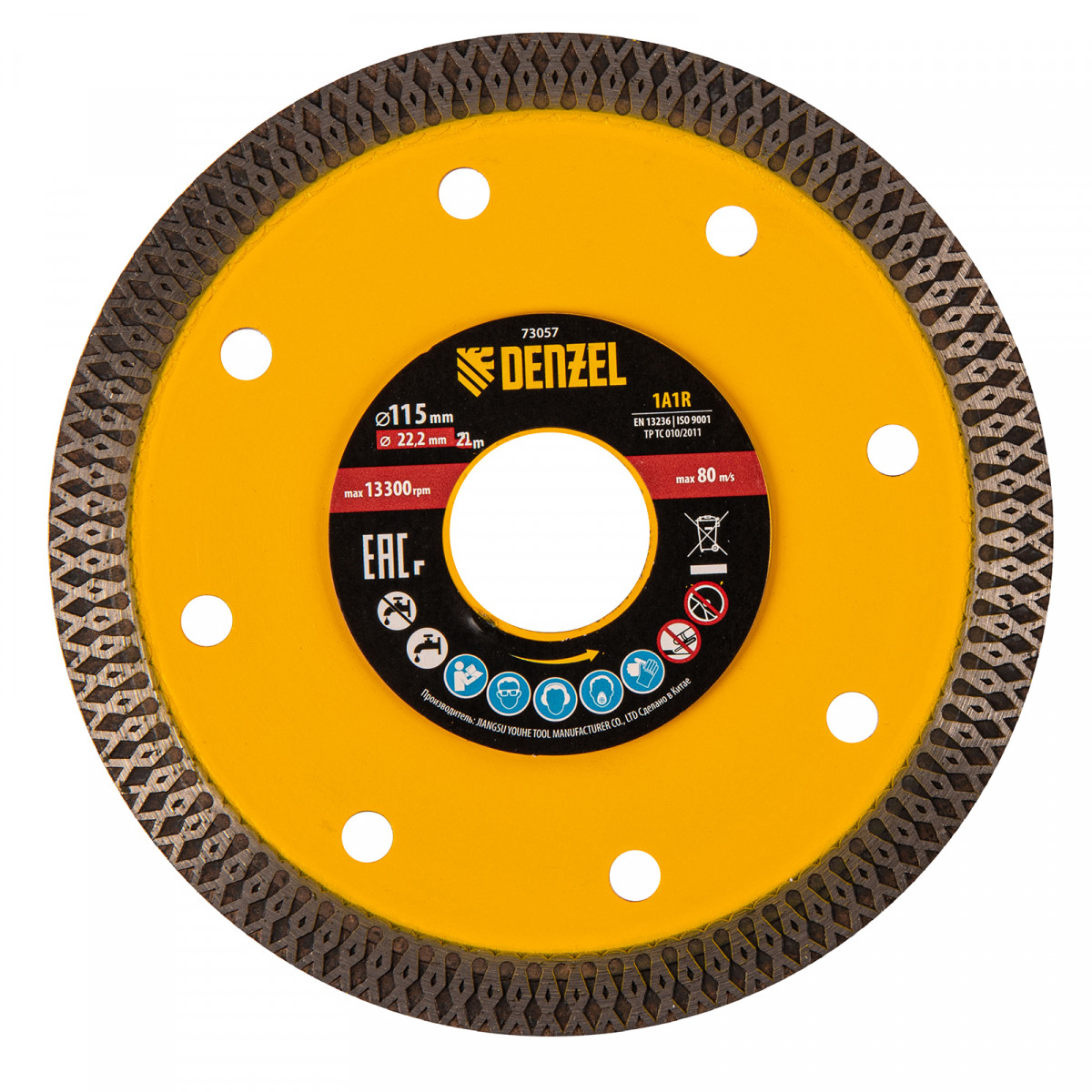 Диск алмазный отрезной 115 х 22,2мм, сплошной, супертонкий, горячий пресс, сухой/мокрый рез Denzel