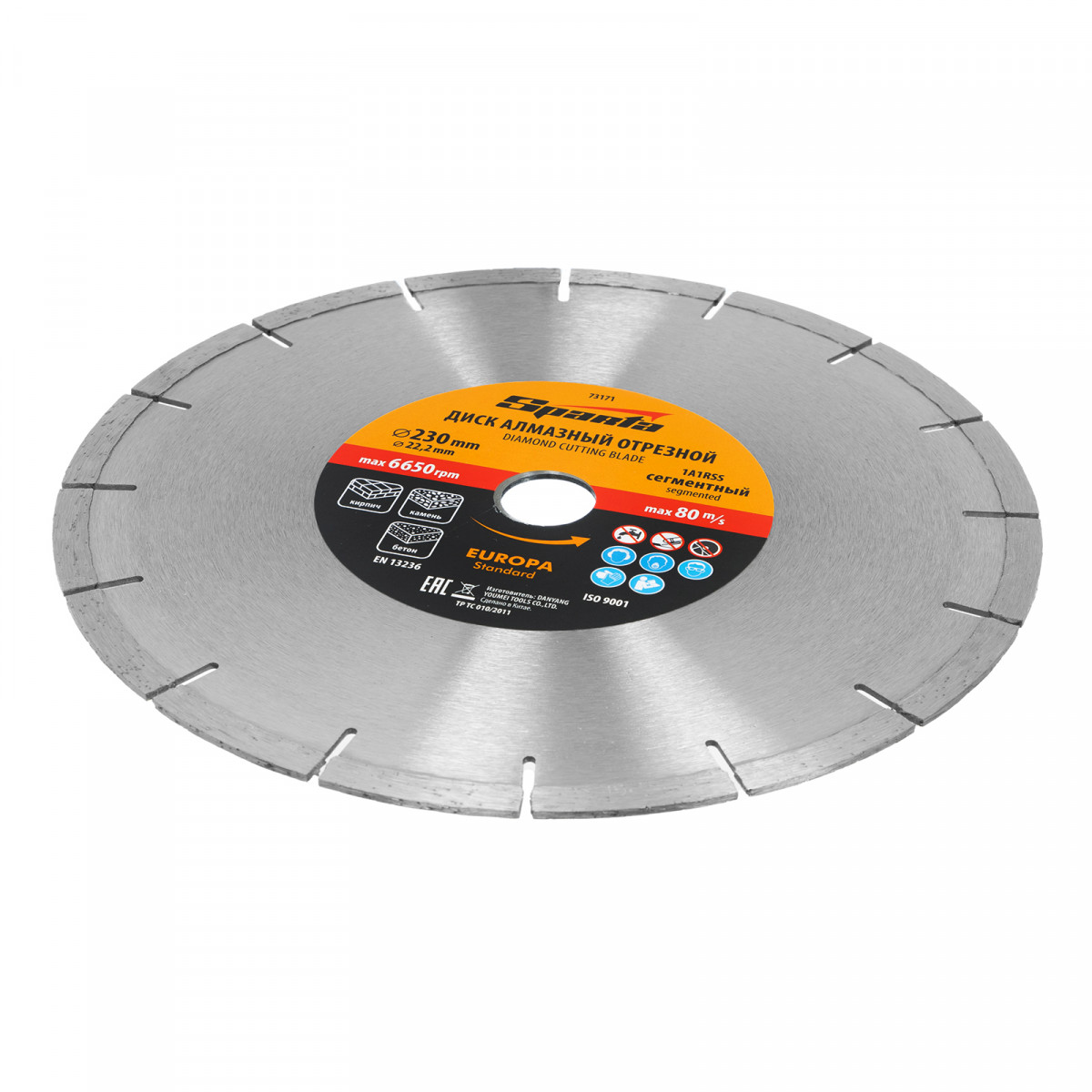 Диск алмазный отрезной сегментный Sparta EUROPA Standart 73171 диаметром 230 х 22,2 мм предназначен для сухой резки бетона, в том числе свежего, камня, кирпича, шлакоблока и тротуарной плитки. Он устанавливается на углошлифовальные машины с посадочным диаметром 22,2 мм. Диск оптимально подходит для бытового использования.