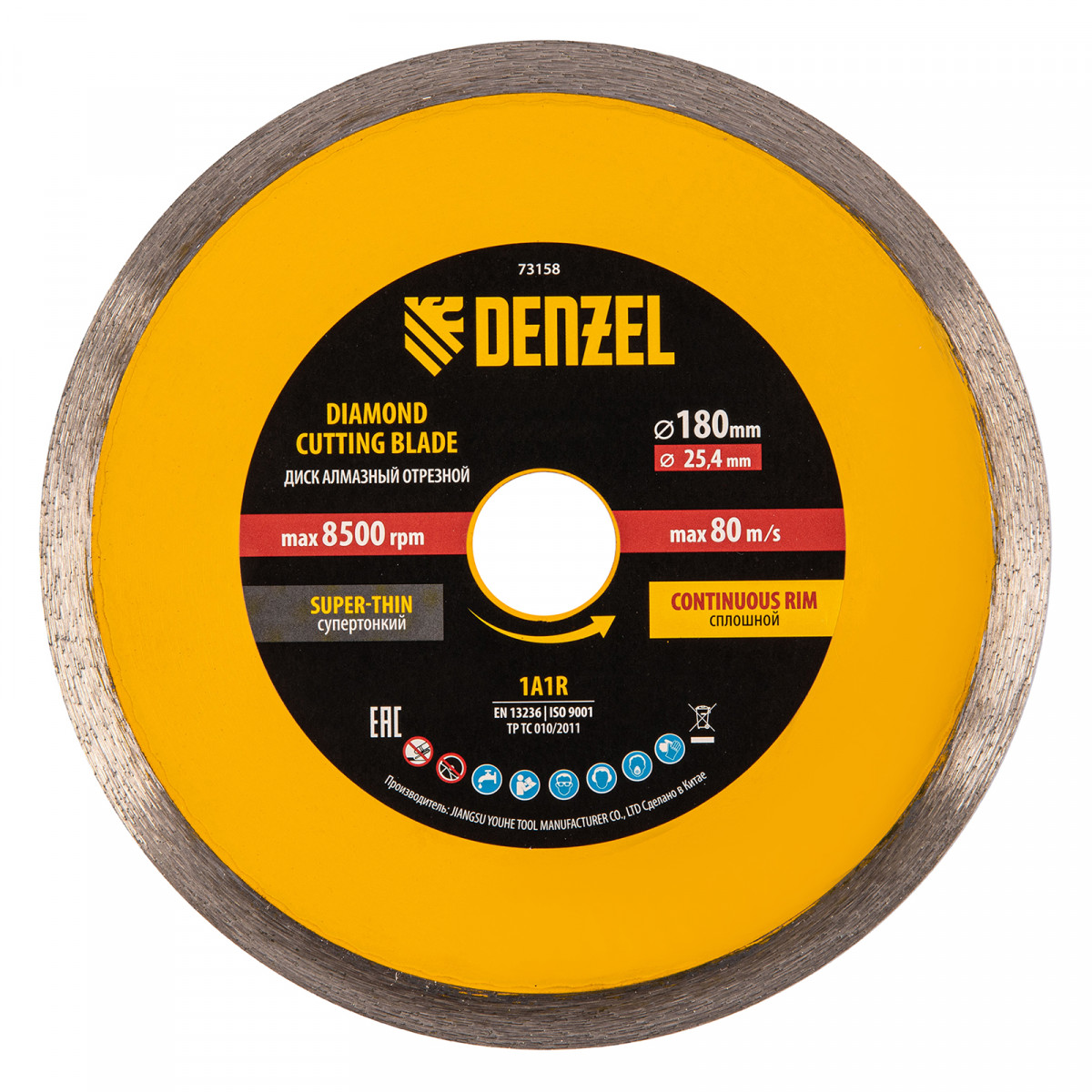 Диск алмазный сплошной, супертонкий, 180 х 25,4 мм, горячее прессование, мокрое резание Denzel