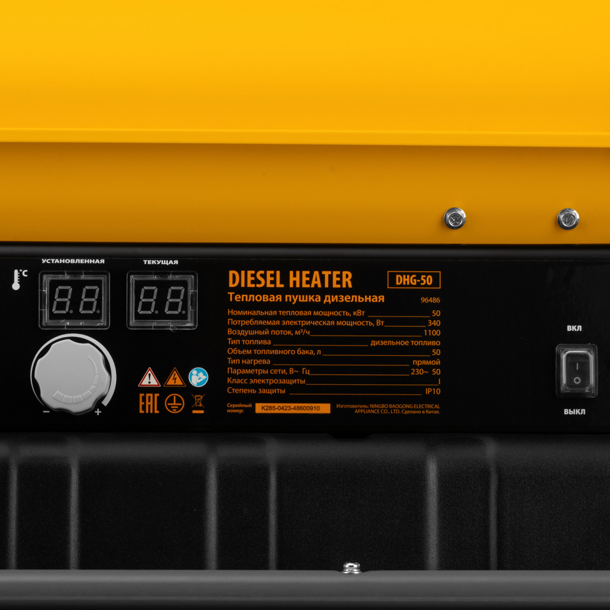 Дизельная тепловая пушка DHG-50, 50 кВт, 1100 м3/ч, прямой нагрев Denzel