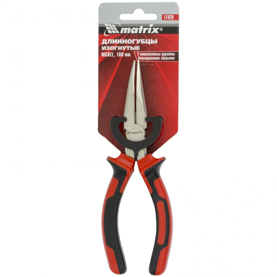 Длинногубцы изогнутые Nickel, 160 мм, никелированные, двухкомпонентные рукоятки Matrix