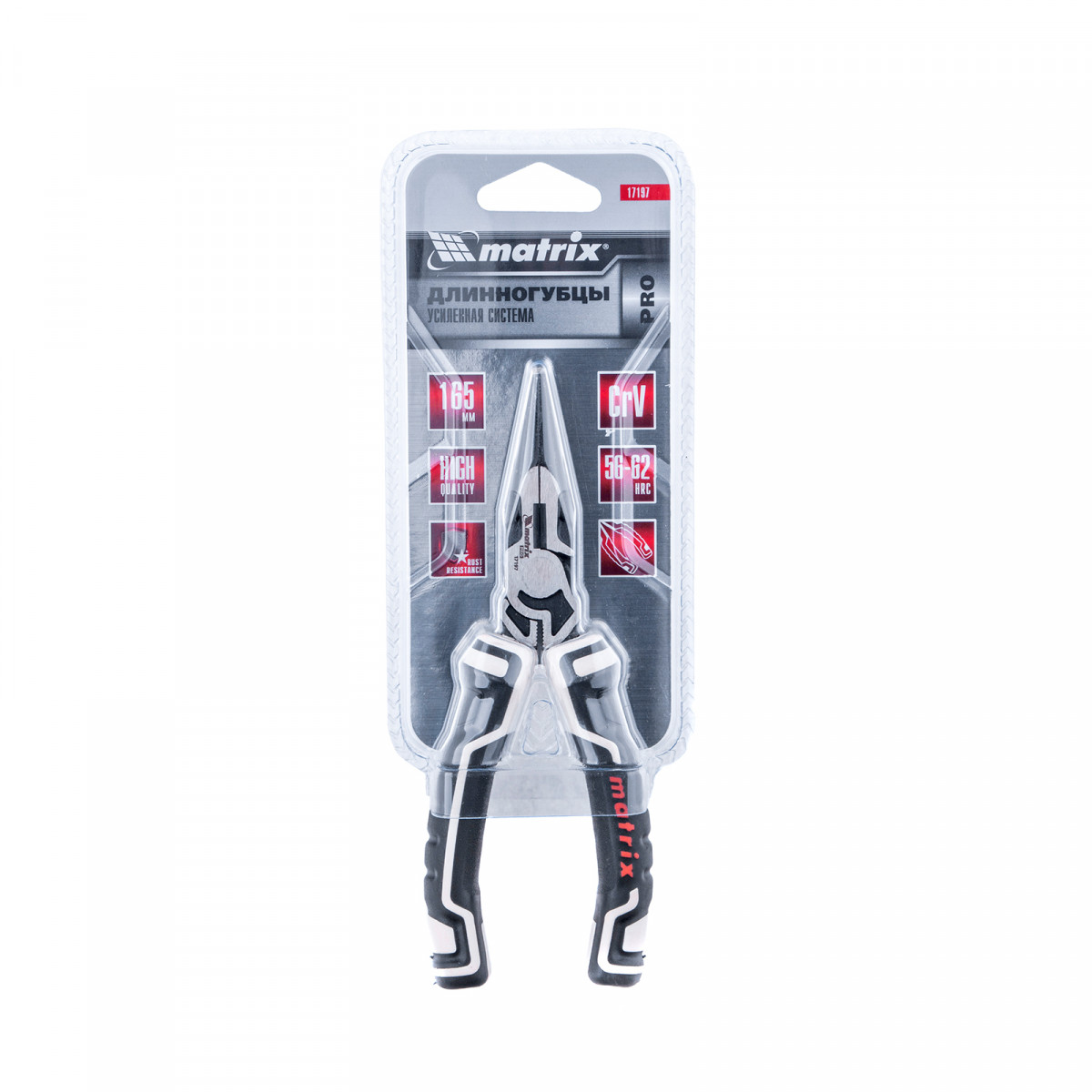 Усиленная система ковки и закалки до твердости 56-62 HRC обеспечивают прочность и долговечность длинногубцов Matrix PRO 17197.