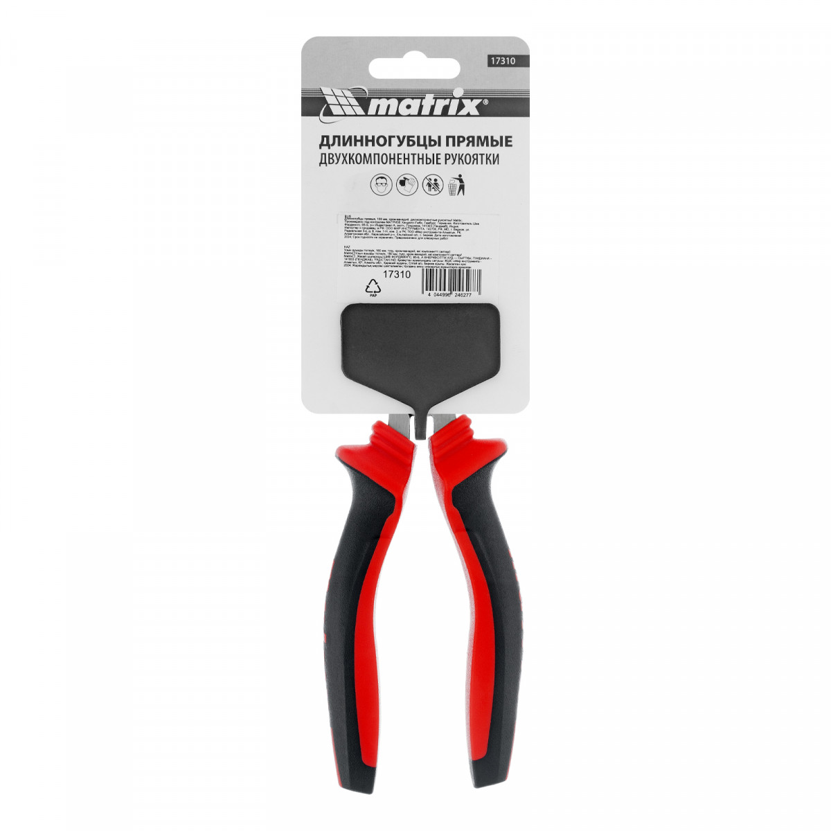 Длинногубцы прямые, 180 мм, хром-ванадий, двухкомпонентные рукоятки Matrix