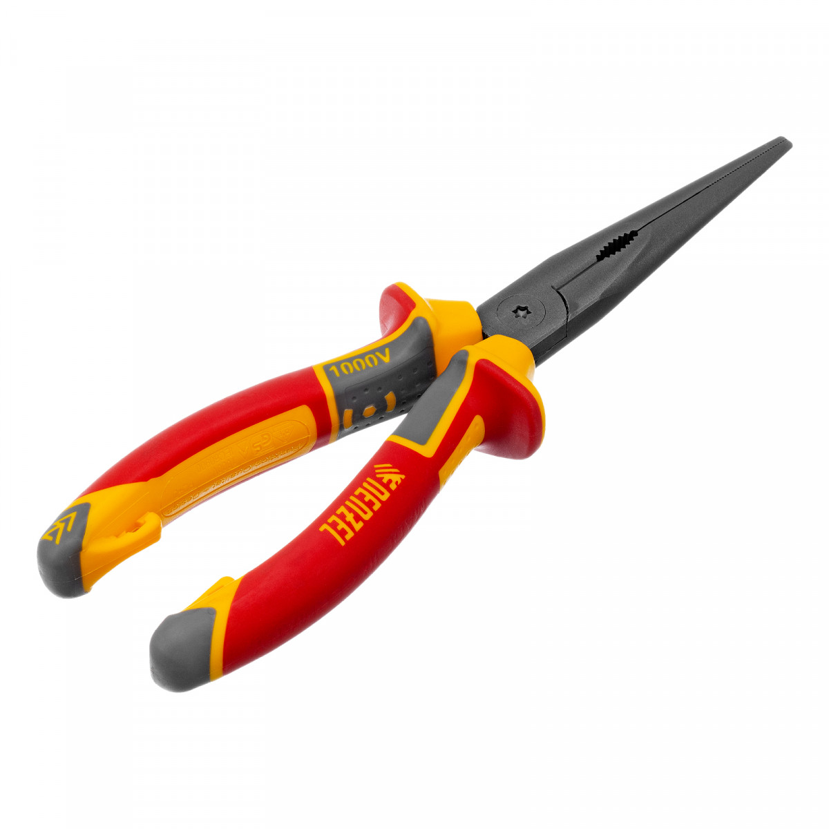 Длинногубцы прямые, диэлектрические рукоятки до 1000 В, трехкомпонентные рукоятки, 205мм Denzel