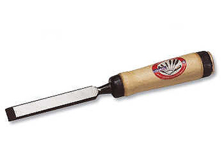 Лезвие стамески изготовлено из инструментальной углеродистой стали У7–У8. Рукоятка из древесины обработана бесцветным лаком для защиты от рассыхания и набухания, имеет на своем конце металлические кольца, препятствующие образованию расколов при ударе молотком. Используется в столярных работах.