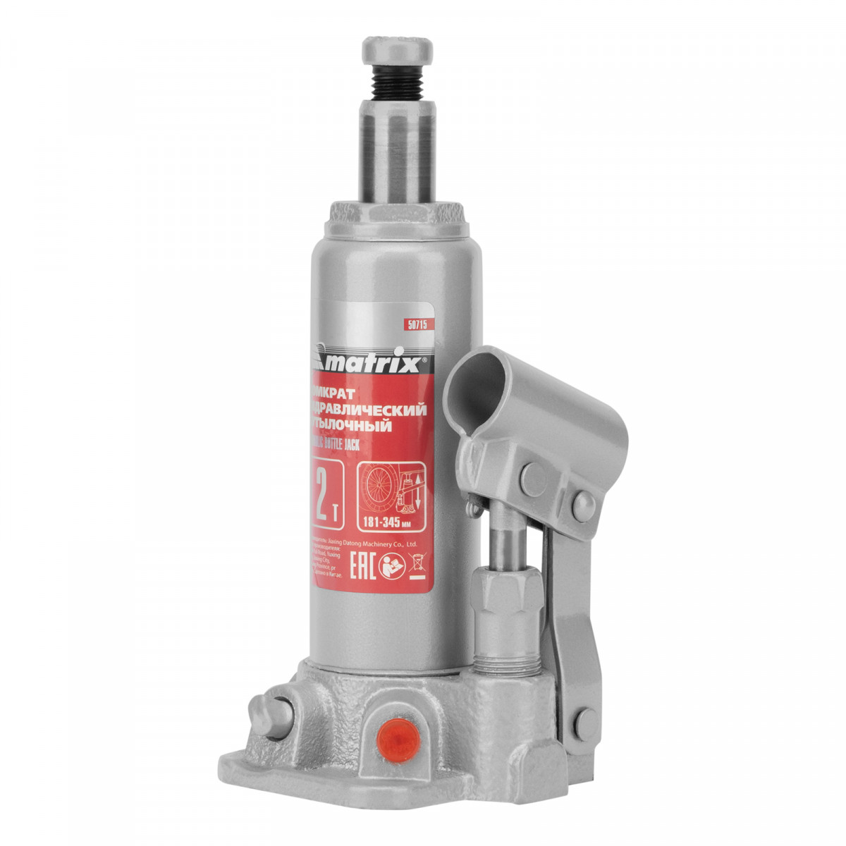 Домкрат гидравлический бутылочный, 2 т, высота подъема 181-345 мм Matrix