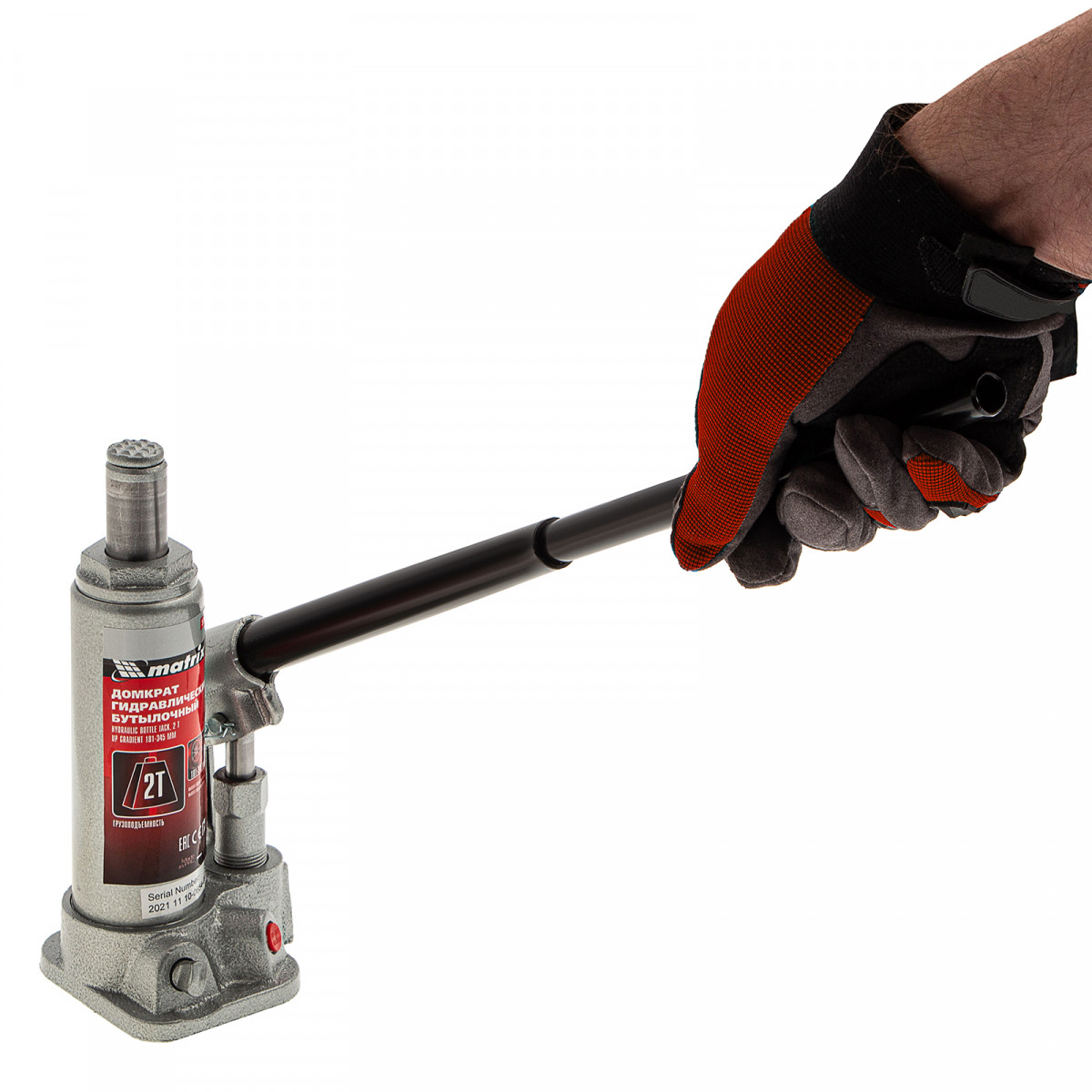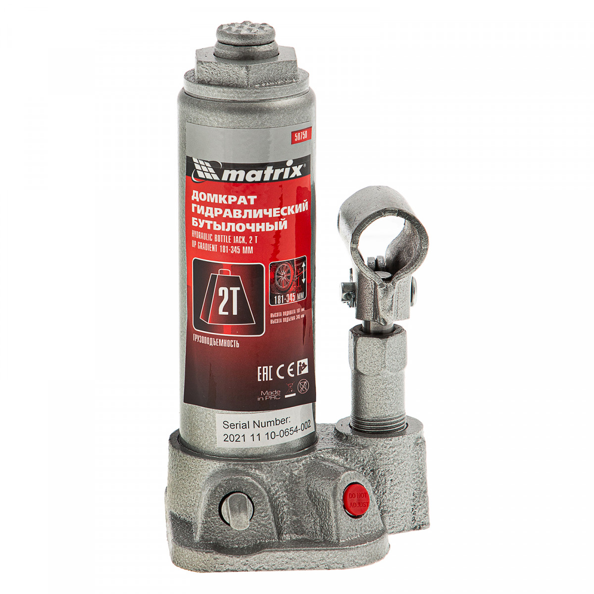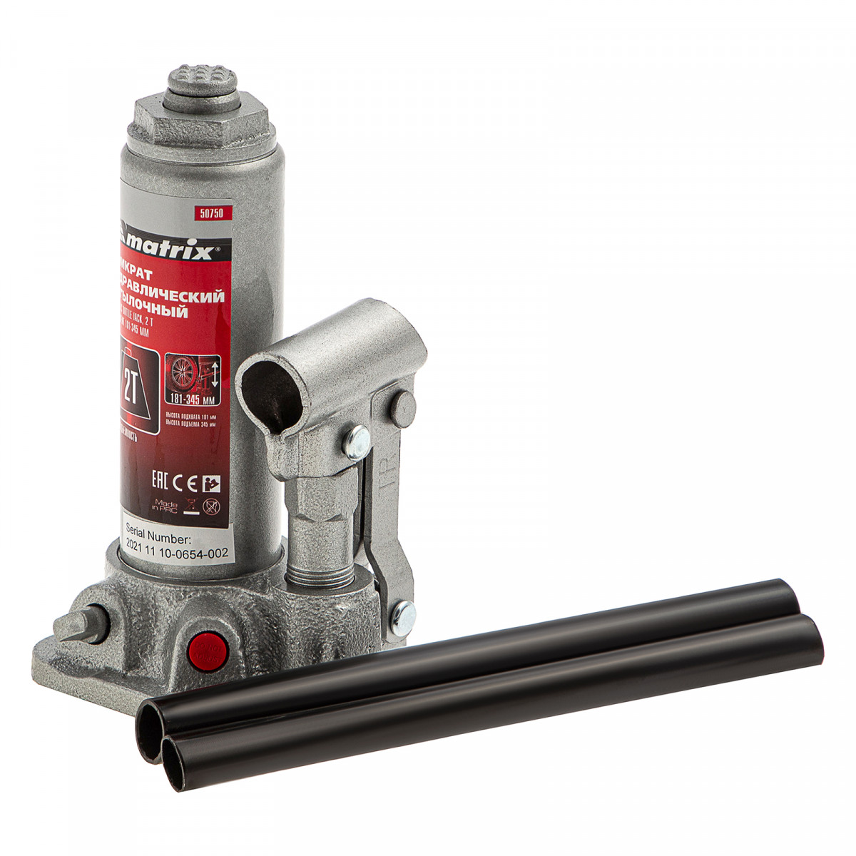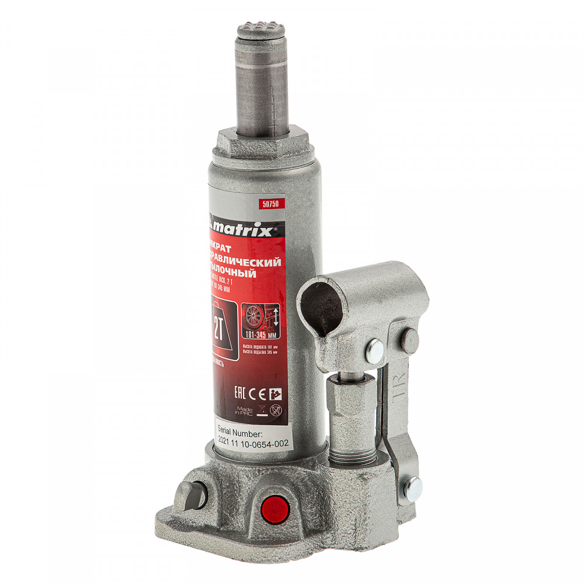 Домкрат гидравлический бутылочный, 2 т, высота подъема 181-345 мм, в пластиковый кейсе Matrix