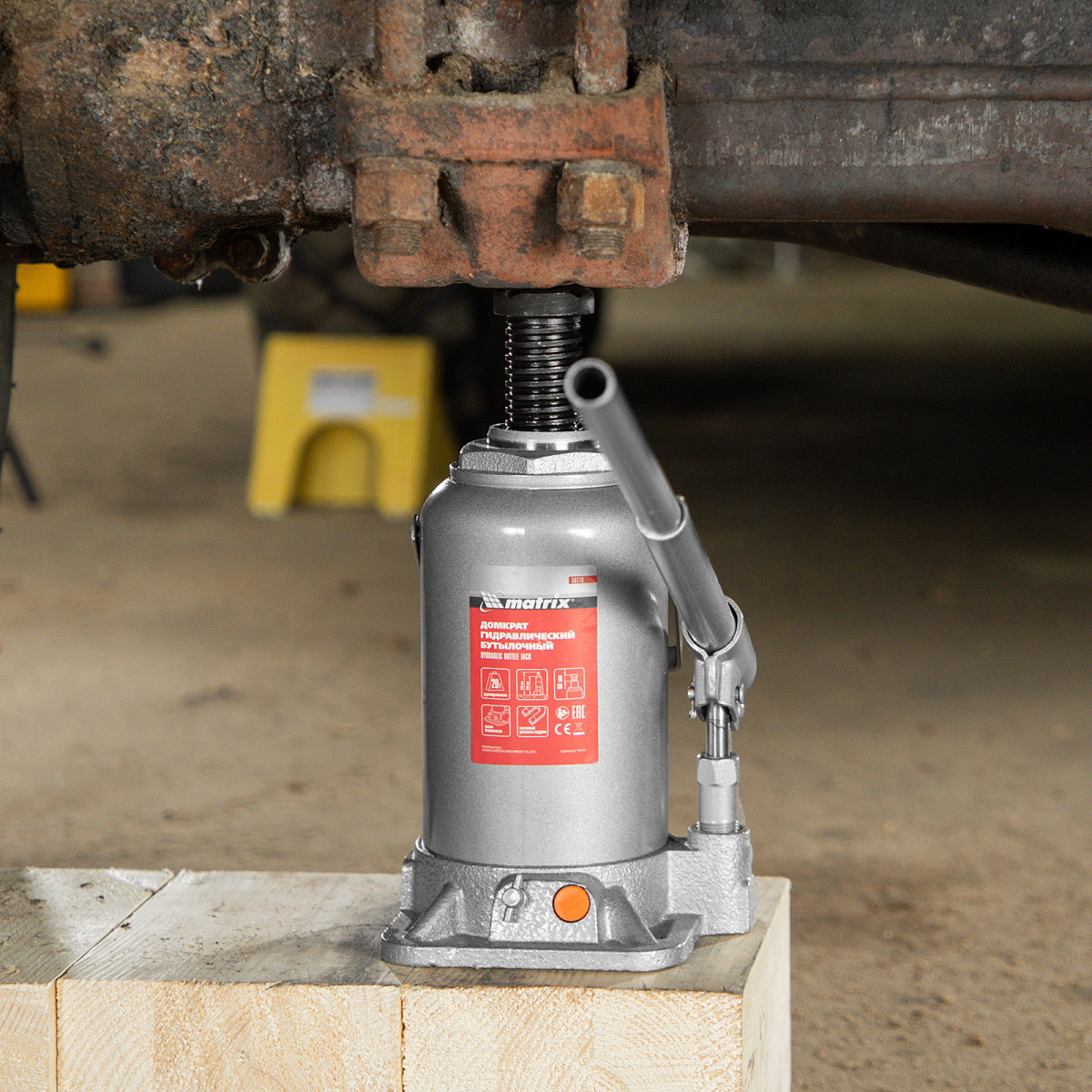 Гидравлический бутылочный домкрат Matrix 50778 поднимает грузы весом до 20 т на высоту 244-449 мм и может использоваться в гараже, на станции ТО или строительной площадке. Встроенный магнитный уловитель собирает металлическую стружку, образующуюся в процессе работы, что защищает домкрат от преждевременного износа.