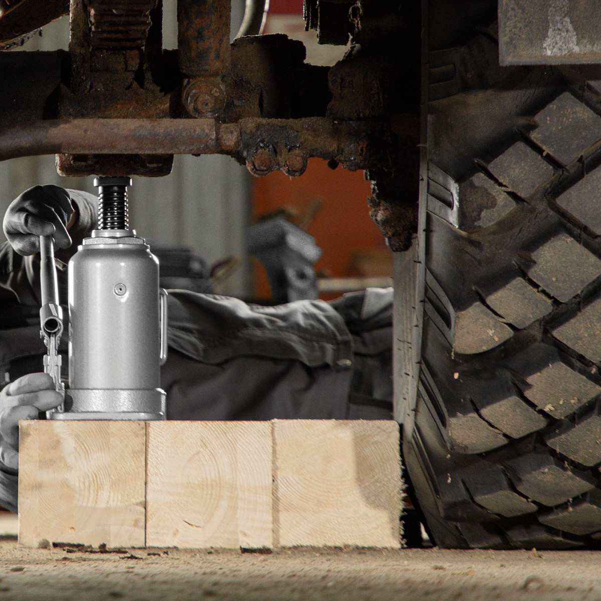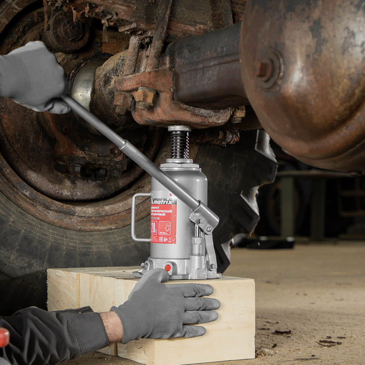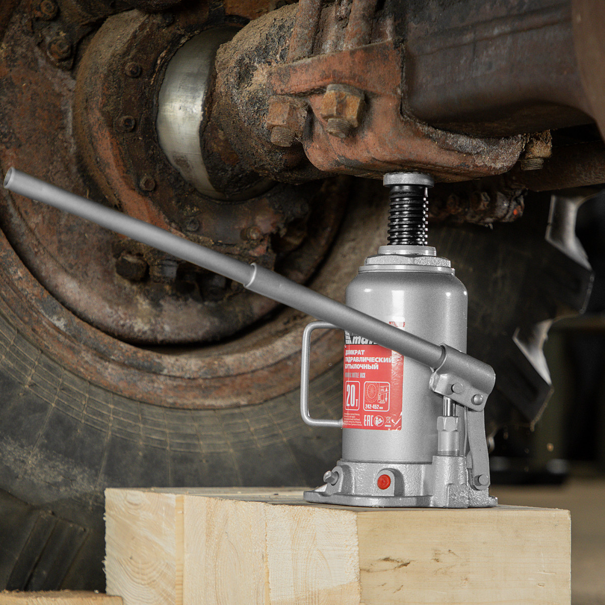 • Надежная конструкция — домкрат имеет чугунное основание и стальной корпус.